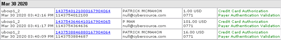 appear in the report. For more information on search results, see Searching for Payer Authentication Details.