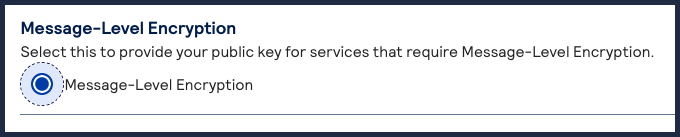 The Create Key page appears. - SelectMessage-Level Encryptionand clickGenerate Key.